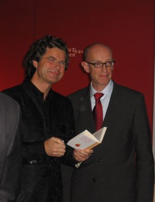 Geschäftsführer des Heyne Verlages (rechts), präsentierte an diesem Abend das neue Buch »Von Liebe, Freundschaft und Glück« von Florian Langenscheidt, welches im März im Heyne Verlag erschienen ist.